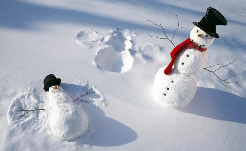 11.冬天下雪了,雪花从天而降。过了一会儿,地上树的屋顶变白了。