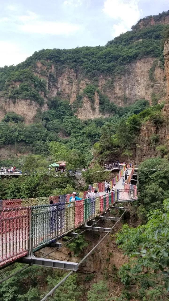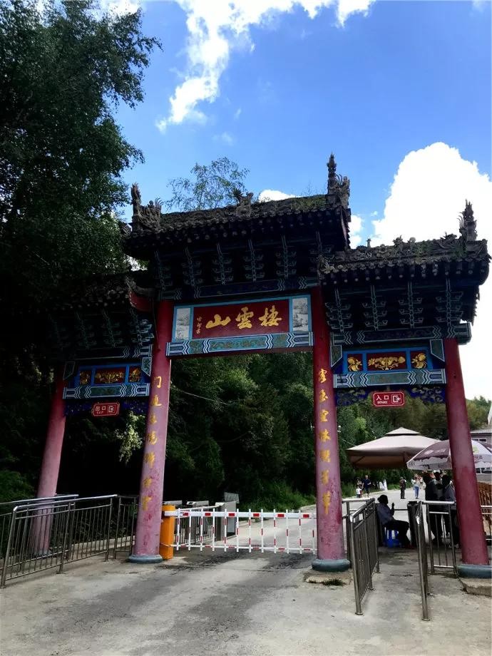 云龙桥云龙桥是一座画廊式木拱桥,桥身为木体弓形,精巧玲珑,似彩虹跨越山涧。桥身长155米,宽3米,桥上设廊7间,桥的两头各有一阁,是歇山顶四角飞檐的建筑。廊内雕梁画栋,廊顶覆盖琉璃瓦。按道家的义理,“龙腾云,云从龙”,这座桥使栖云、兴龙两峰贯通一气,所以叫做“云龙桥”。桥头篆刻着一副醒目的对联:“云比泰山多,霖雨苍生仙人悦;龙入沧海外,扑峦翠霭灵气来。”