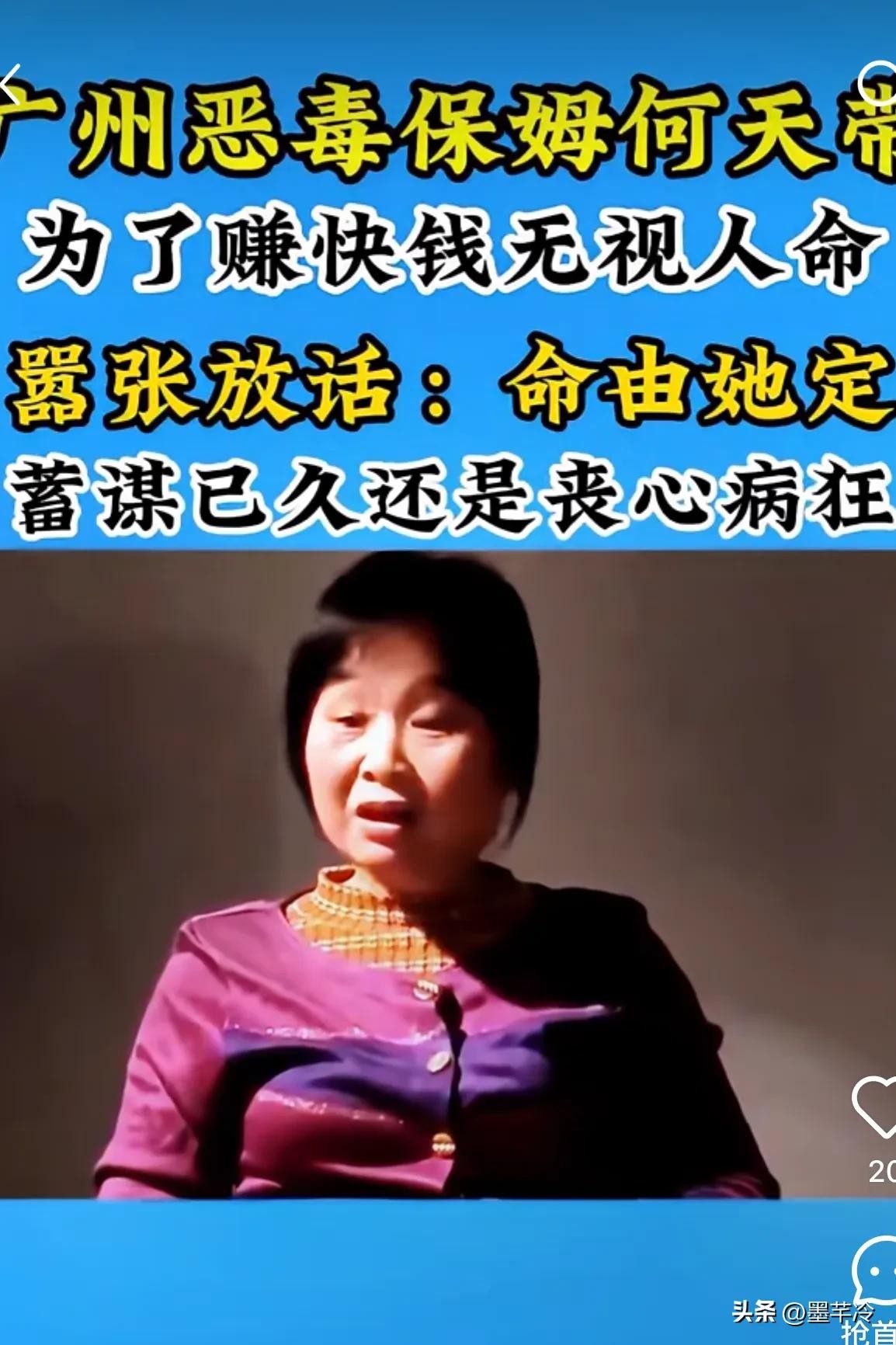 我要他三更死!他留不到五更!”这是广州毒保姆何天带的心里话。