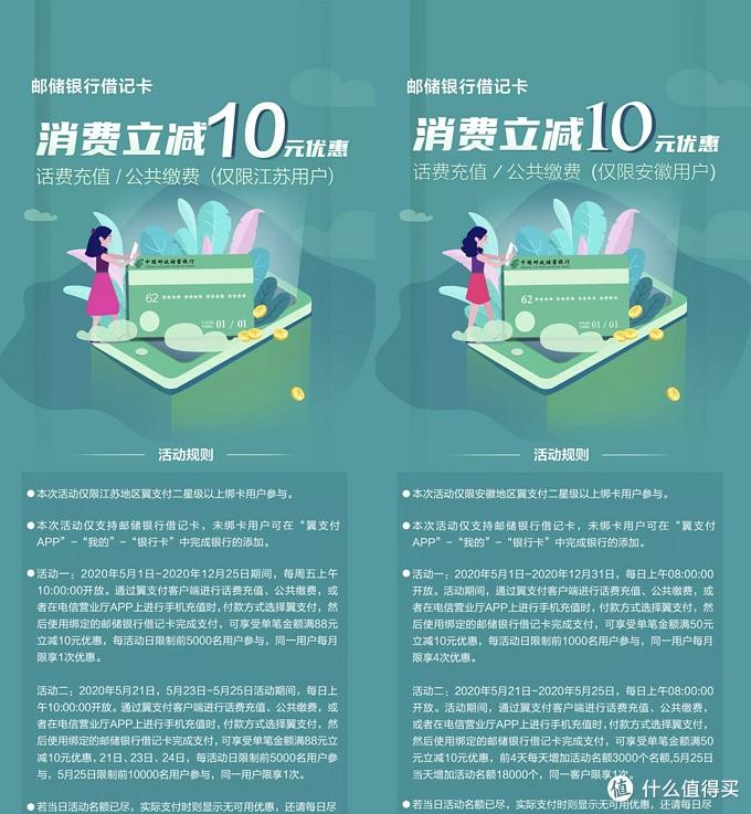 五、翼支付✖邮储银行借记卡地区八折、九折话费(限江苏、安徽地区)