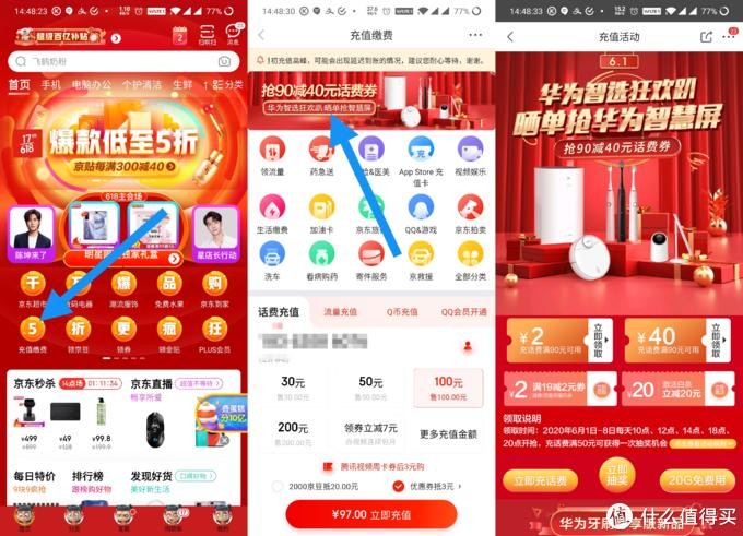 苏宁app可以领取10-2的支付券用来充话费,每户仅限领取一次,苏宁金融app领券中心每天可以领取10-0.5的支付券,也可以用来充话费,这是实在没有优惠时使用。(苏宁有些页面越来越像京东,如果不是体验不如京东app顺滑我还以为时同一个app)
