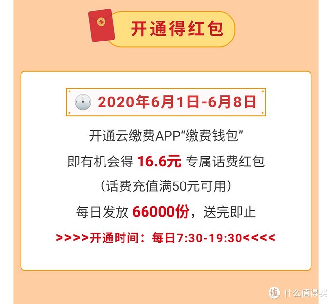 活动截止6月8日,云缴费是光大银行旗下的生活缴费软件,开通缴费钱包就相当于开通了光大银行的II类卡,需要人脸识别等敏感信息,适合已经使用过云缴费的用户,另外充值完成后还可以抽取166话费,据说整点抽取的概率最大。