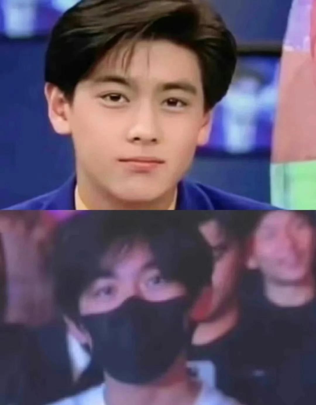 于是把这张照片跟林志颖年轻的时候做了个对比,随后发现这个的神态和少年跟林志颖年轻时候太像了,眉眼神态和脸型,简直就是翻版的林志颖,所以身后的这位少年肯定就是林志颖的大儿子Kimi没错了。