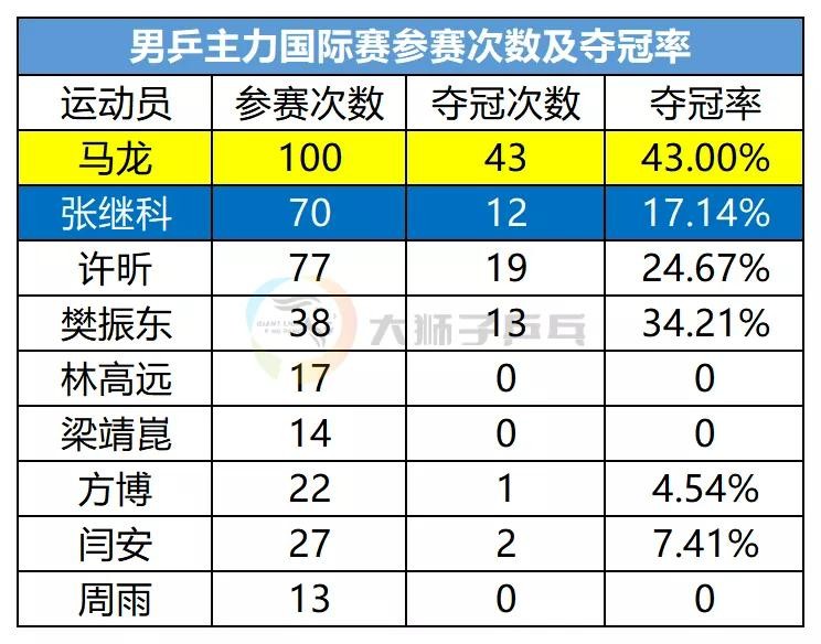 那今天咱就用数据给那些初入乒乓球的小白球迷分析一下马龙和张继科谁厉害。