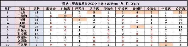 马龙47个张继科14个。