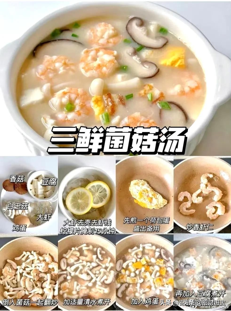 鸡肉炖蘑菇汤:将鸡肉和蘑菇一起炖煮,口感鲜美,营养丰富。