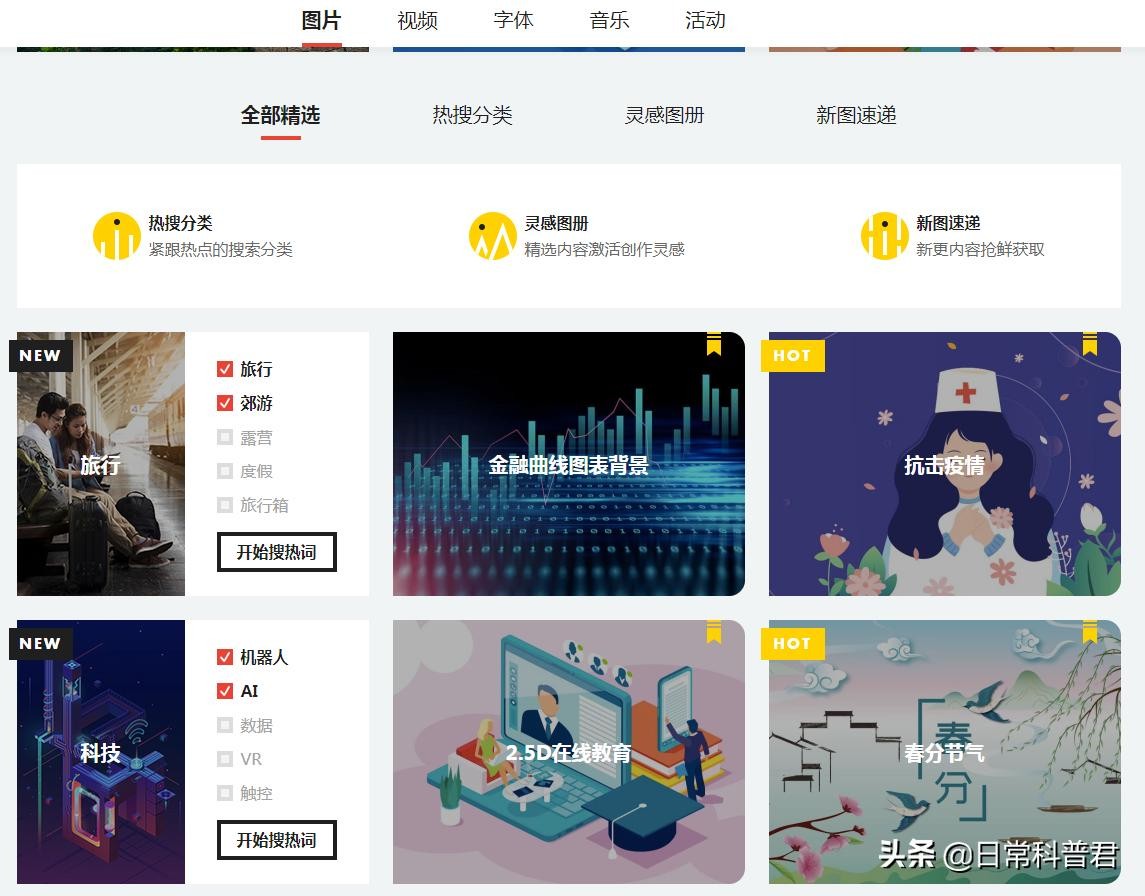 它是一个原创素材共享平台。素材包括设计成功案例,摄影作品,视频素材,矢量图素材等。另外就是图库分类特别详细,你可以快速根据分类找到自己需要的素材。