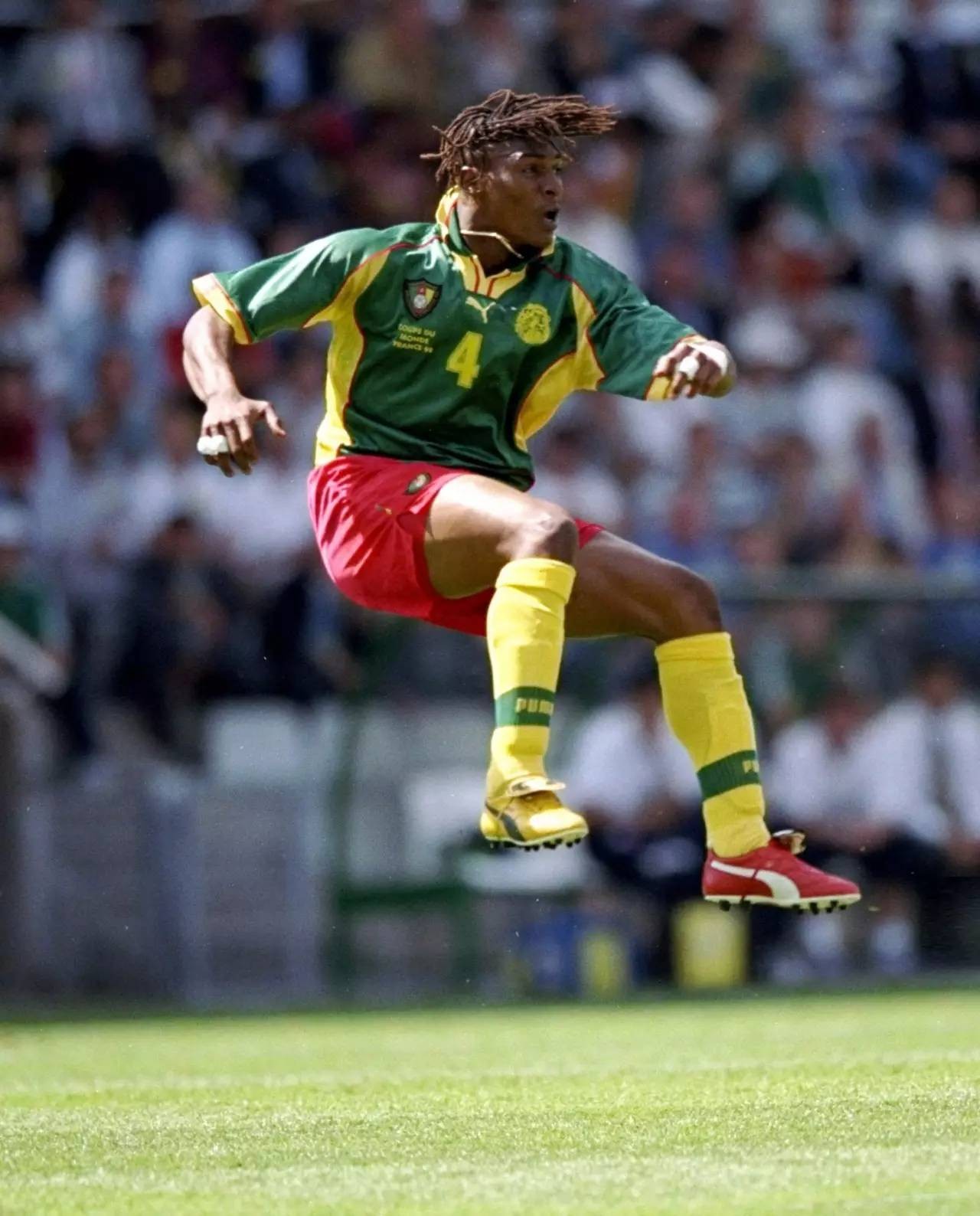 对了,这个小组还有一个妙人宋哥,就是喀麦隆队长里格贝特—宋。在小组赛最后一场对智利的比赛中,宋哥两只脚分别穿了两种不同颜色的球鞋,一只黄色,一只红色。如此招摇,想不吸引人都难啊!“犯有强迫症的”裁判,非要给他的球鞋配个对,最终宋哥因为犯规得到一张黄牌和一张红牌,被罚下场。值得一提的是,1994年世界杯,17岁的宋哥在对阵巴西的比赛也曾被红牌罚下,宋哥也因此成为世界杯历史上第一个两获红牌的球员(不是唯一的原因是齐达内也分别在1998年世界杯和2006年世界杯两获红牌)。2002年日韩世界杯,痛定思痛的宋哥终于换了双球鞋的颜色,成功逃过了红牌之灾,不然三连红的记录估计无人能破。