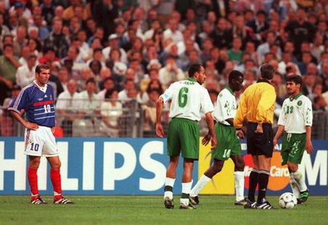 1996年亚特兰大奥运会足球冠军非洲雄鹰尼日利亚小组第一场3:2击败西班牙后,第二场又1:0保加利亚,连续两届世界杯小组赛击败同一个对手,最后一场比赛轮换大部分主力的尼日利亚1:3负于巴拉圭,但这并不妨碍他们以小组第一的身份出线。顺便说一下,当时尼日利亚的主教练正是我们中国球迷的老熟人米卢:1986年墨西哥世界杯,米卢带领墨西哥进入八强,1990年意大利世界杯,带领哥斯达黎加进入16强,1994年美国世界杯,率领美国队进入16强,这一次,他又率领尼日利亚进入16强,连续4届世界杯带领不同球队进入16强,直到目前全世界足球教练能做到这点的,也只有米卢蝎子尾巴独一份了,神奇教练可不是白叫的。4年后,这位神奇教练再创神迹,什么样的神迹,你们懂得。