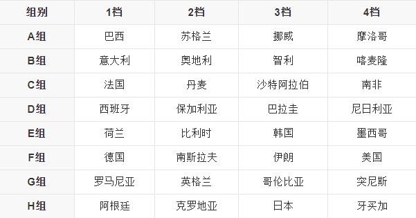 法国世界杯小组赛分组图