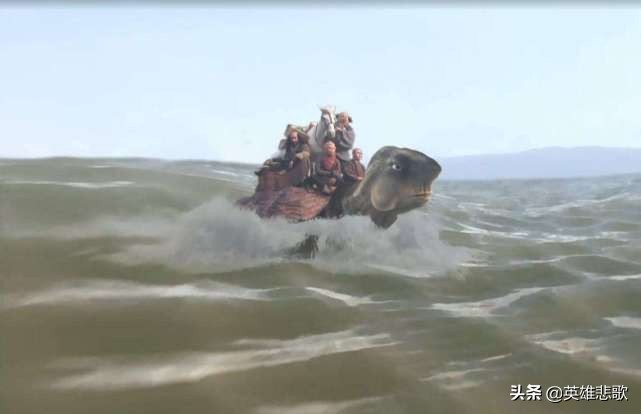 唐僧师徒四人坐乌龟背渡通天河