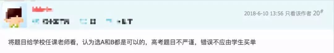 近日,有考生和家长对我省使用的2018年高考全国卷理科综合第八题参考答案提出异议,我院立即组织有关专家,对该试题进行分析,经专家组认真评议认为,我省使用的2018年高考全国卷理科综合第八题本身无问题,但不同群体从不同角度,对试题的B项选择有不同的理解,综合各方面意见,也考虑到高中教学实际,我们将在制定评分细则时明确,对该题单选A或者单选B选项的作答均给六分。