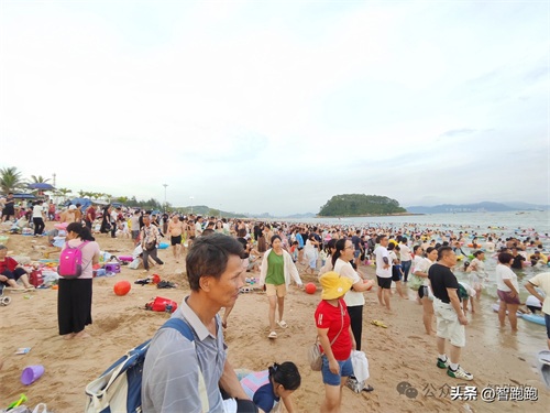 我们办理入住后,休息到了下午五点,太阳没有那么毒辣了,就下去海滩玩水咯。由于只能在规定的地方下水游泳,又是周末,真的是人从众啊,壮观的下饺子场景。