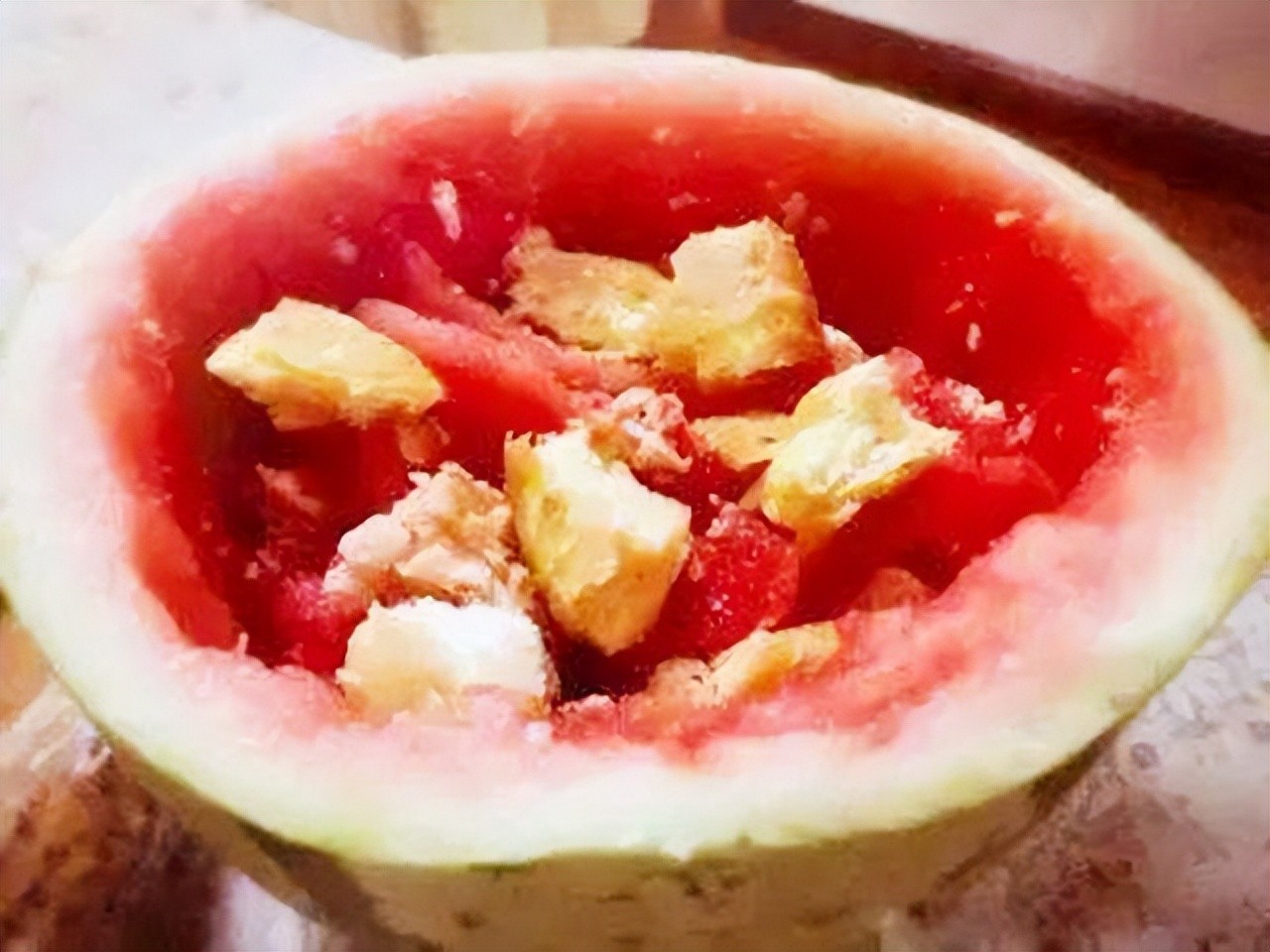 32、宁夏有一种“西瓜泡油饼”的吃法,看似有点像是黑暗料理,不过尝试之后还是不错的哦。