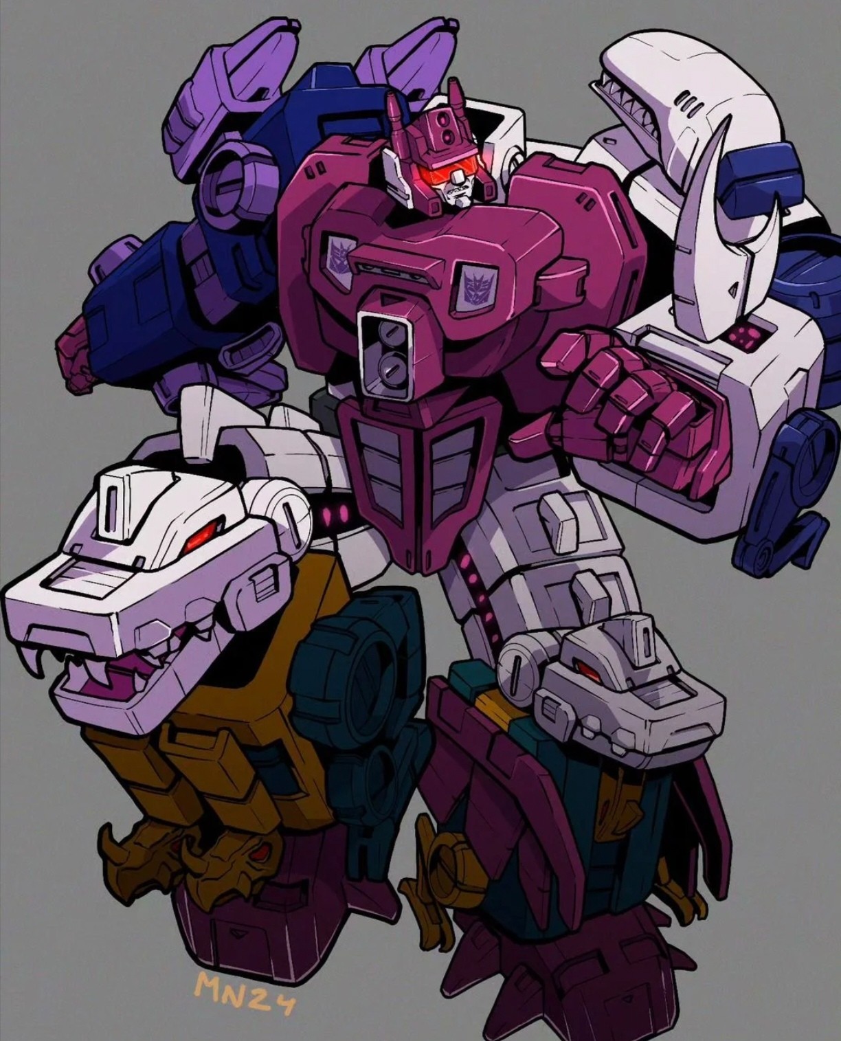曾几何时,大力神作为战场上唯一的合体金刚呼风唤雨,甚至成为两派竞相争夺的香饽饽。而随着威震天打造出飞虎队,汽车人也有样学样推出了飞行太保,这种可以快速模仿的技术就是著名的交叉合体(合体的四肢成员能任意替换)。自此,合体金刚出现了井喷现象。飞天虎、大无畏、混天豹、守护神……正邪双方的新合体们上演了精彩的对决故事。