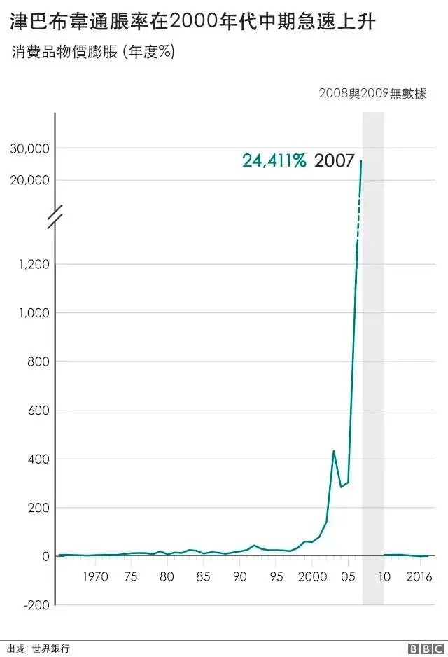 本世纪初,津巴布韦政府激进的土地改革政策,导致该国经济一落千丈,通胀一路飙升。