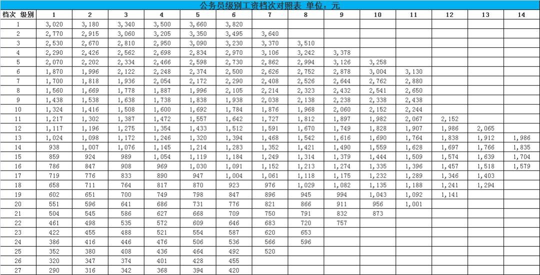 重磅!2020公务员工资套改等级标准对照表,你知道工资有多少吗?