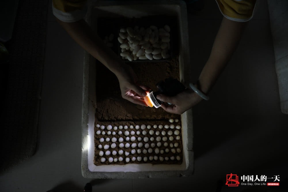 而在隔壁的一间屋子里,整齐地堆放着十多个泡沫箱。小杨掀起一个盖子,里面同样平铺着细沙,小杨将蛇蛋整齐地排好,然后盖上细沙。要是不出意外,8周以后,就能孵化出一条条小蛇。