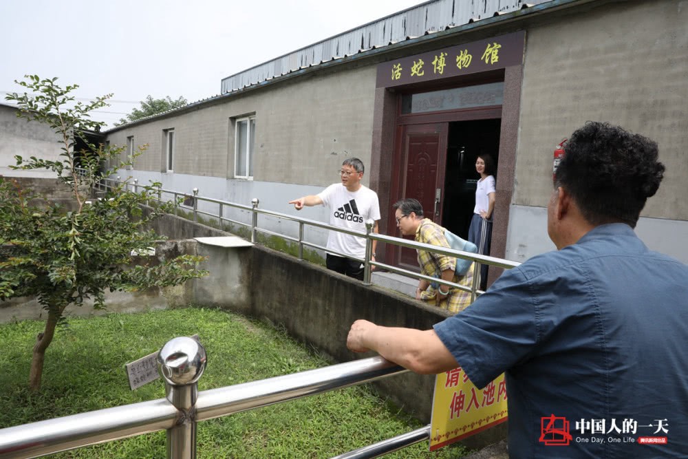几位杭州来的游客慕名赶到杨洪昌的蛇场参观。