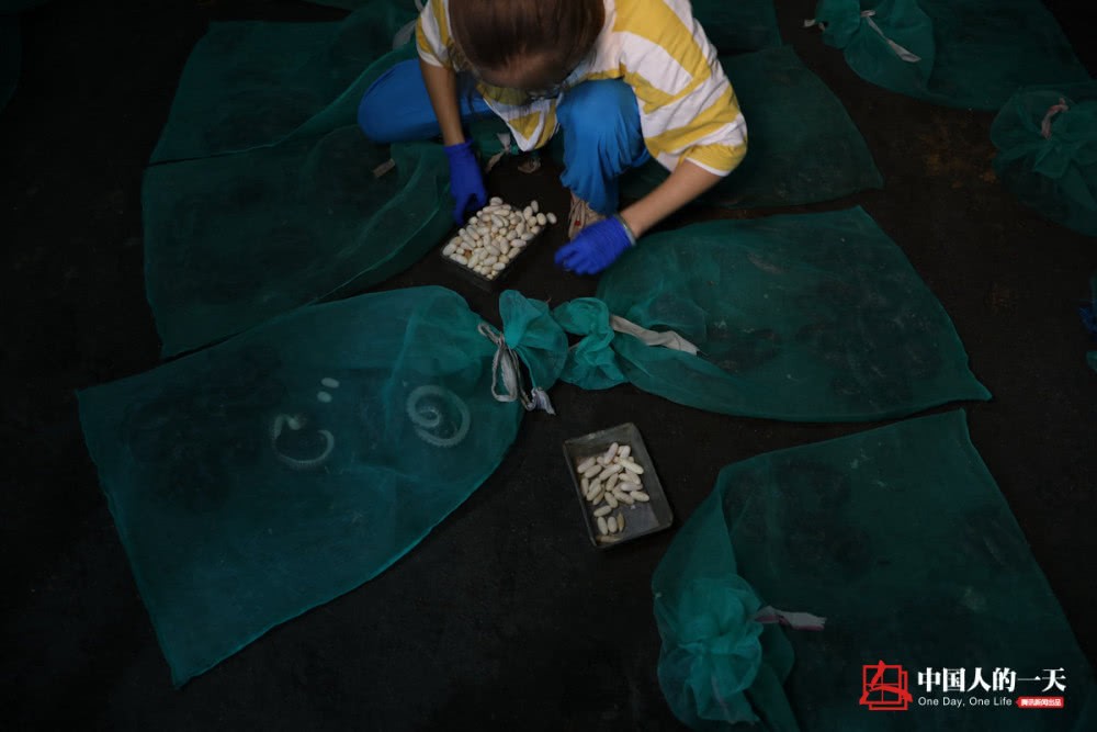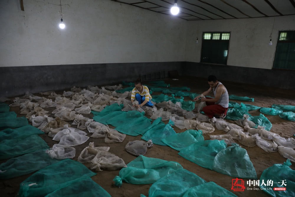 诺大的蛇房里光线昏暗,窗户上都蒙着厚厚的黑布,地面上铺了一层厚厚的细沙,上百个网袋紧挨着放在沙上。每个网袋中都盘着好几条蛇,袋口用绳扎紧,防止蛇逃脱。小杨半蹲下身子,轻轻地解开绳子,把手伸进袋子,将一个个刚产下来的蛇蛋取出。夏季是蛇类产卵的高峰,这一天,小杨饲养的蛇产蛋5000多枚。小杨告诉记者,这里养了足足有差不多一万多条赤链蛇。