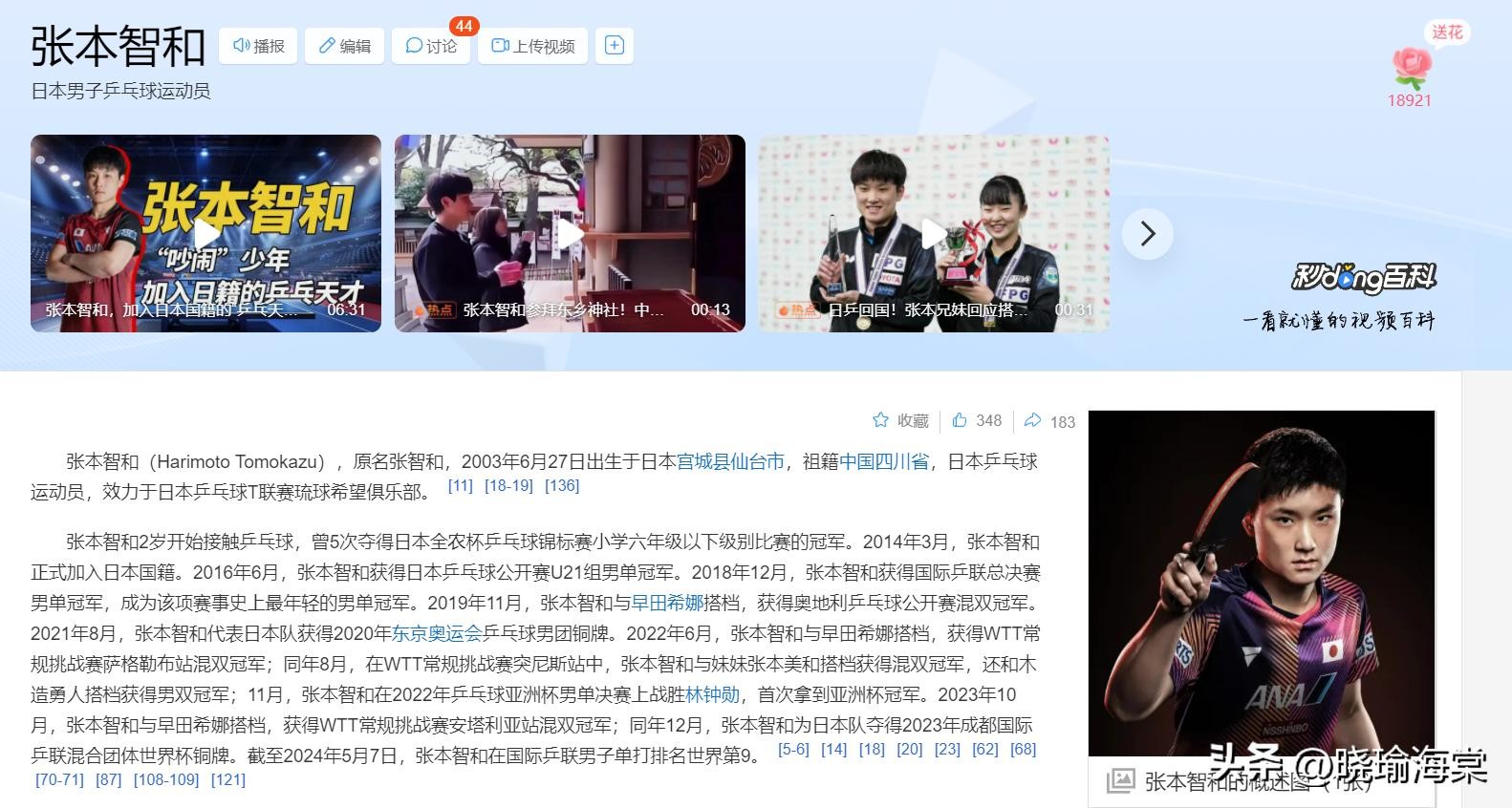 百度百科——张本智和