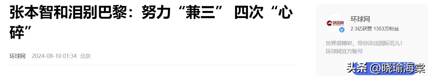 环球网:2024-08-10《张本智和泪别巴黎:努力“兼三” 四次“心碎”》
