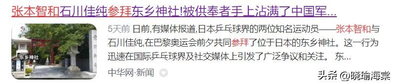 中华网:2024-8-14《张本智和石川佳纯参拜东乡神社!被供奉者手上沾满了中国军民的鲜血》