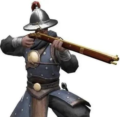 作战时以放铳为长兵,发射完毕之后,可当铁棍近战砸击敌军为短兵。故而,快枪手同样不配弓箭。