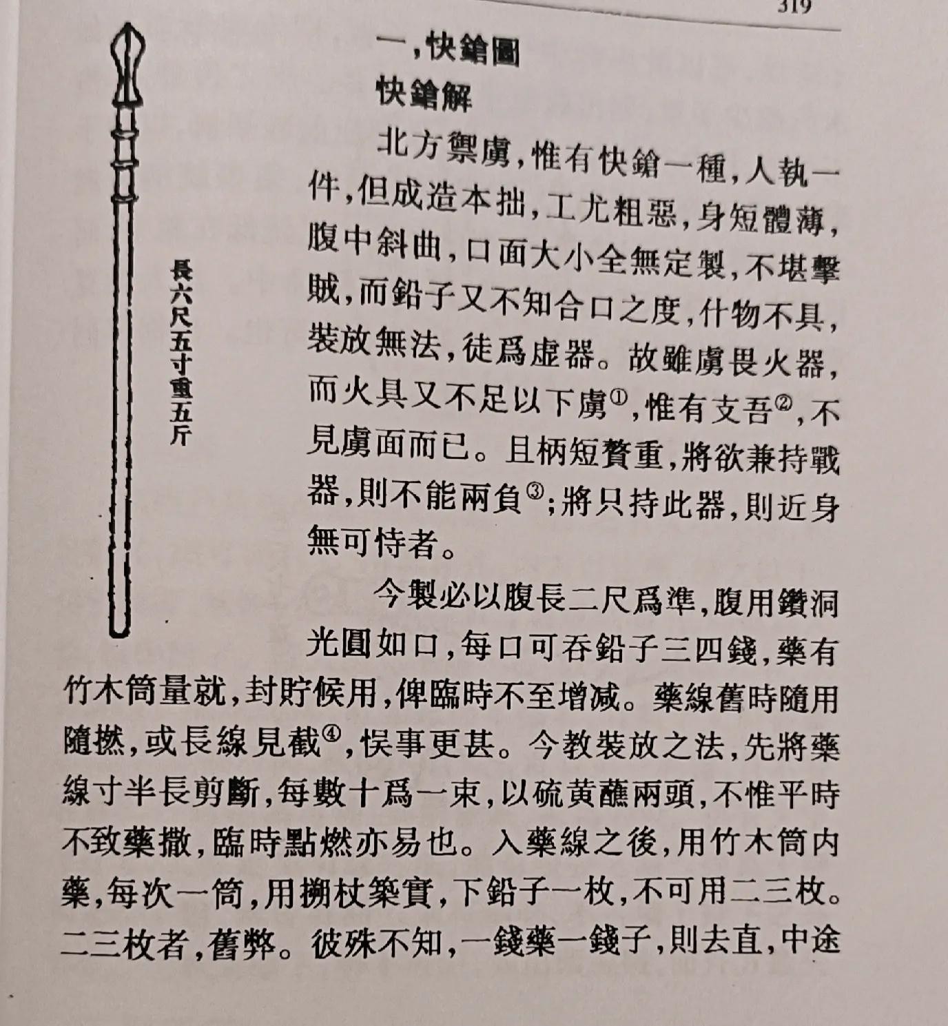 “快枪”长六尺五寸,重五斤。