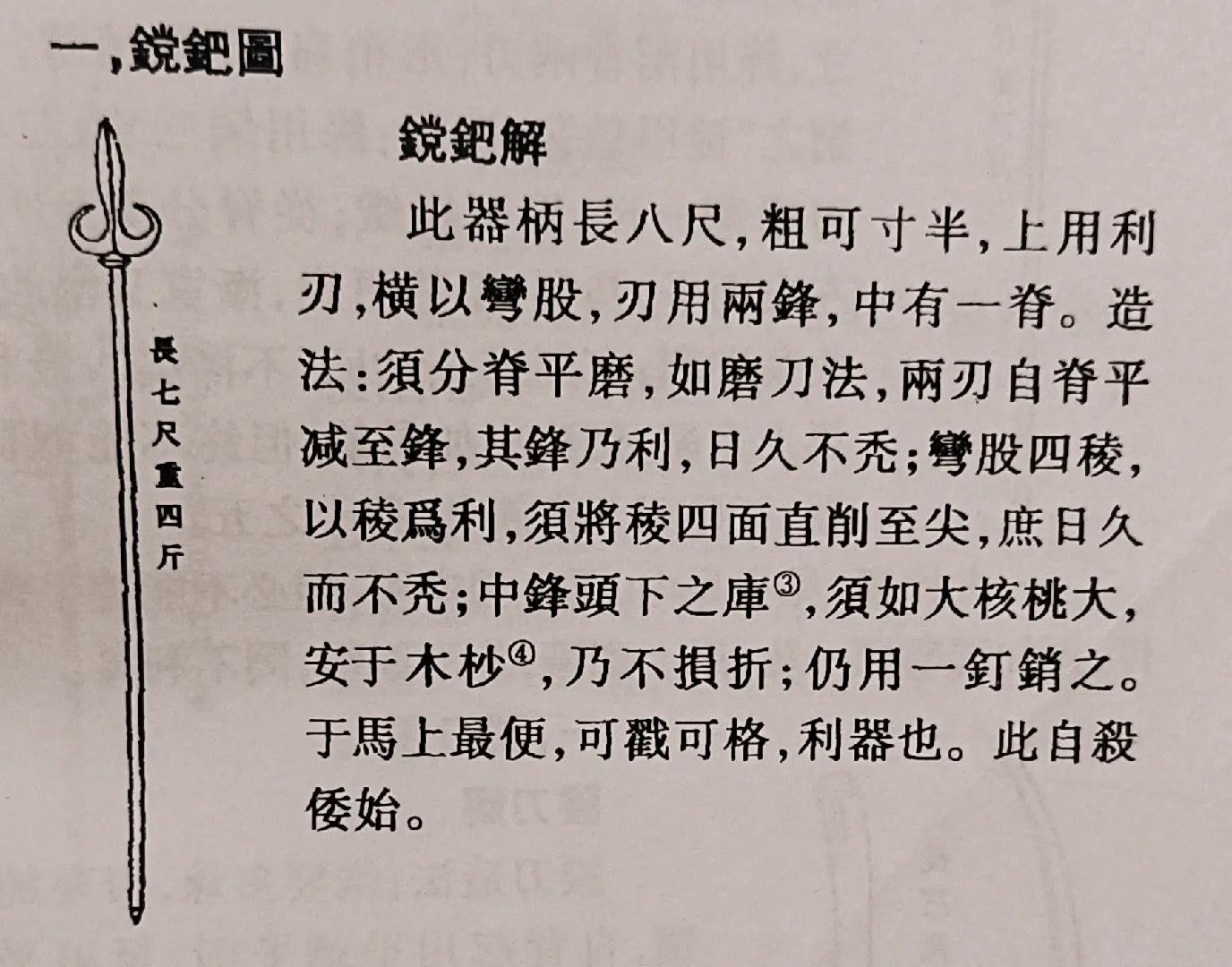 镗钯长八尺,重四斤。