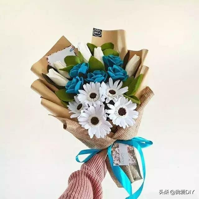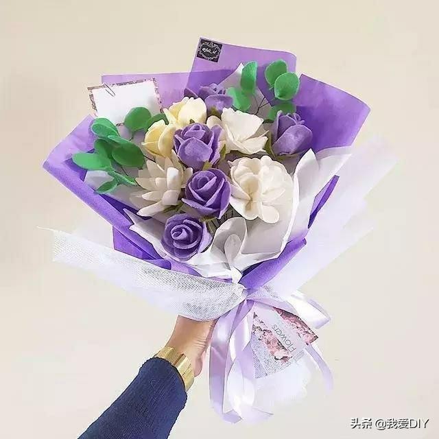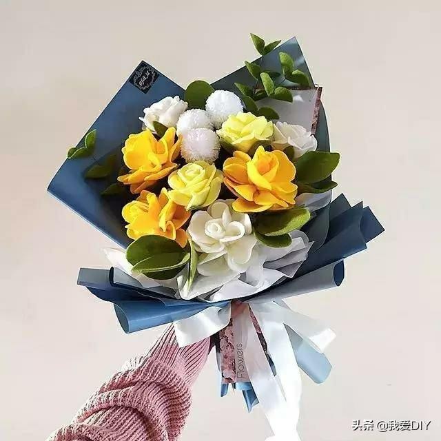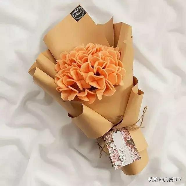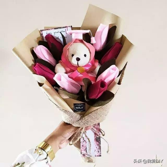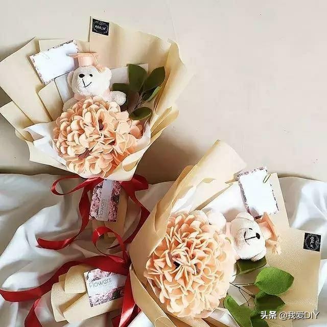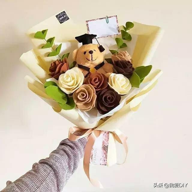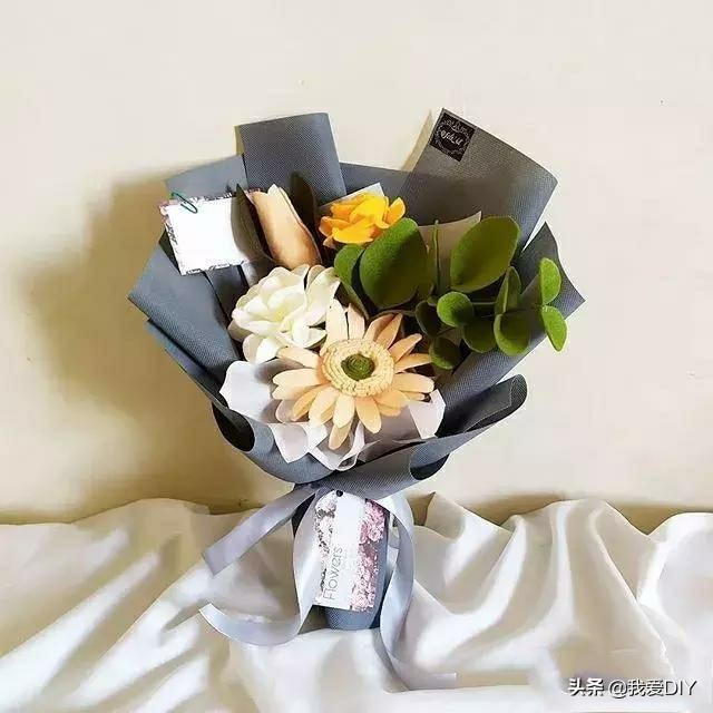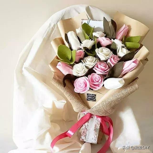 当然,还有很多种方法的,学会了这些,我们就可以自己动手做一扎送人哦。不织布花做好,后还可放上小玩偶,或放上一些小饰物做点缀,包装完后,加上一张心意卡,就更完美啦!