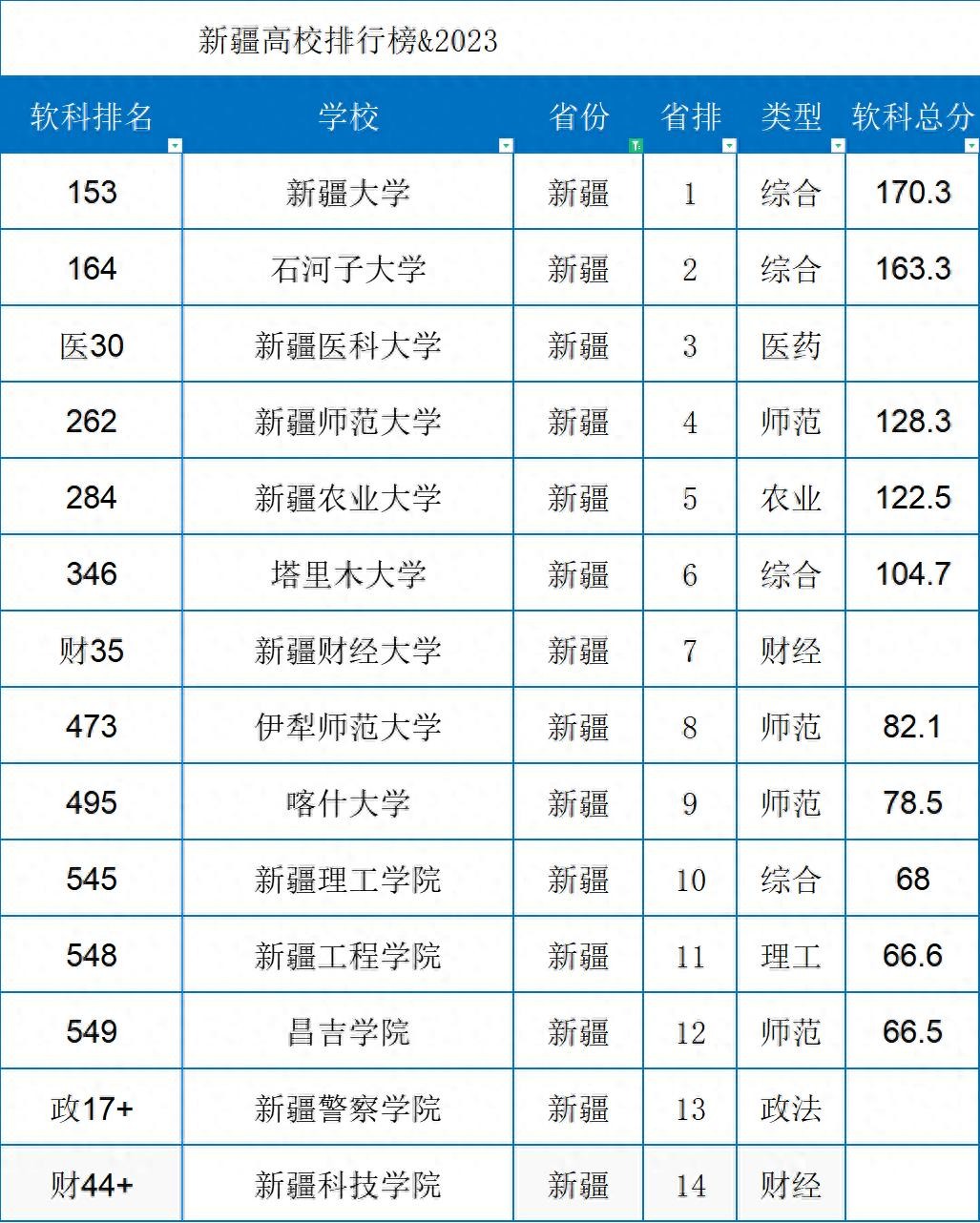 新疆高校排行榜2023