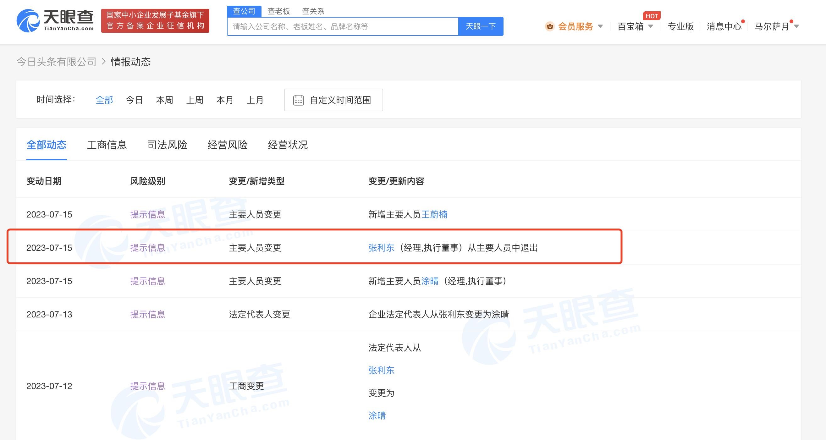 张利东卸任今日头条公司职务