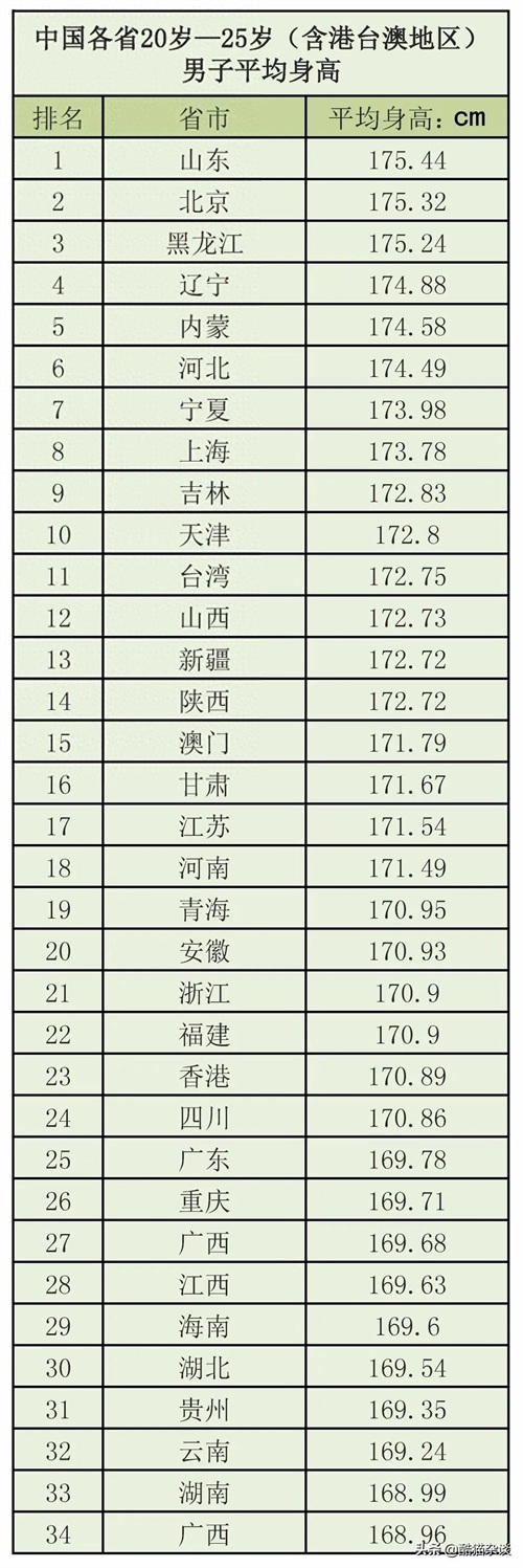 - 北京市:175.32-175.43厘米,位列第二。