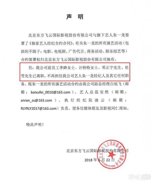 然鹅,朱一龙的经纪公司却突然宣布:朱一龙的经纪人李婵和几个工作室的小伙伴都离职了。