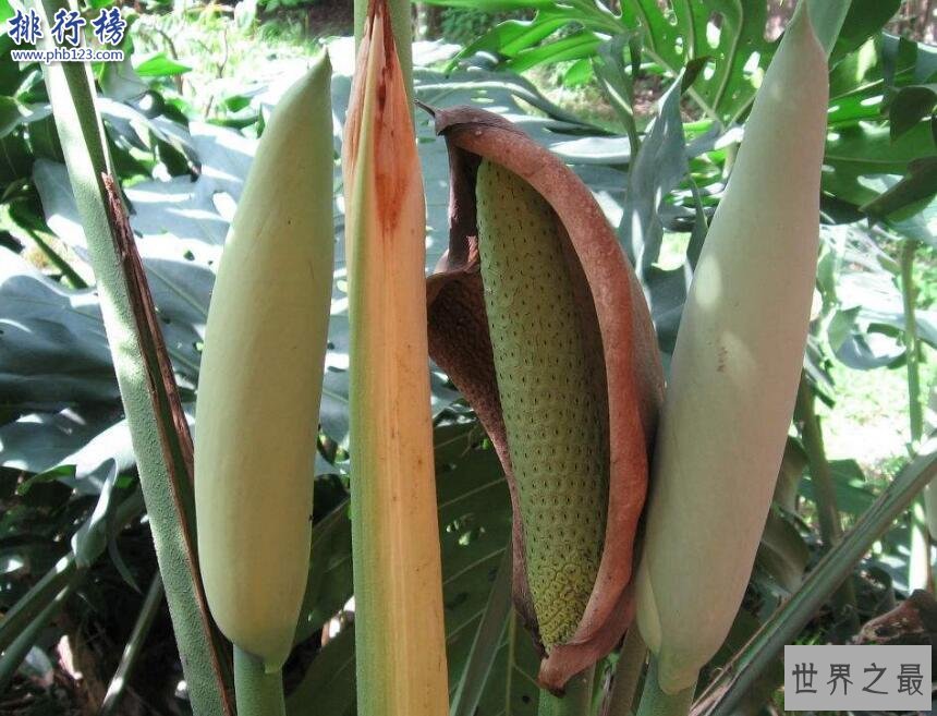 很多人认为龟背竹是一种观赏植物,其实它也可以结果,并且特别好吃。龟背竹果实产于热带雨林,需要一年时间才可以熟透。