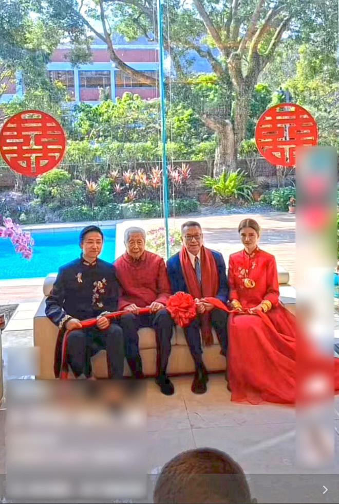 据悉,此次证婚仪式是在男方大豪宅里举行的,施伯雄、吴千语、施荣怡、施子清四人坐在家中沙发上对着镜头留下了温馨的一幕。