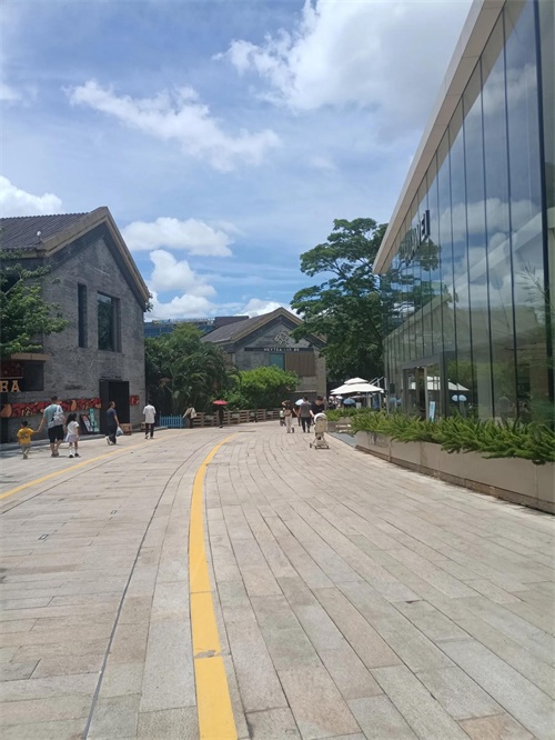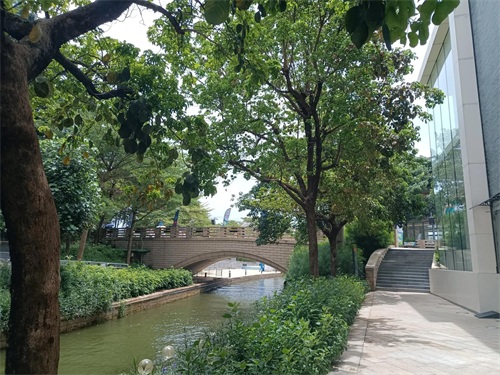 华为正门前的路,走下去,可以观赏一下沿路的风景,两边都有休息的店面,有茶饮,也有一些高端的餐厅。
