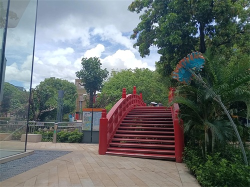 这个小红桥过去,再走下去,再左转,可以到达水族馆,还有职业体验中心。小孩子们的最爱。