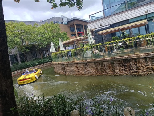 华为店的侧门出去,临河,可以坐游艇,当然要收费的。河中的水,不太干净,比较污浊,小船开过去,立刻后面层层白色泡沫。