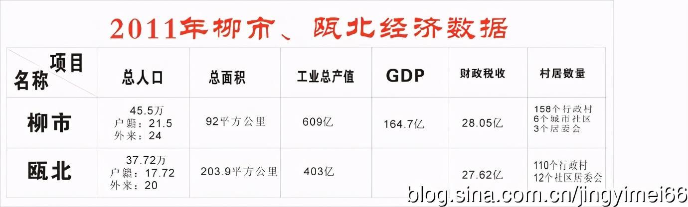 当然,瓯北镇“消失”有些可惜了。现在“四大天王”柳市、龙港(已设市)、塘下、鳌江、都已经成为首批浙江省27个试点小城市之一,是所在县市的发展龙头老大,是经济发展的方向标。瓯北镇“消失”是有些可惜,其实按2011年瓯北镇的经济数据,其实已经快追赶上温州第一大镇柳市,若放在浙江省27个小城市试点中也可名列前茅(财政收入第二名)但是非常遗憾,瓯北却永远没有机会了。下面选取的是2010-2011,瓯北-柳市经济数据比较: