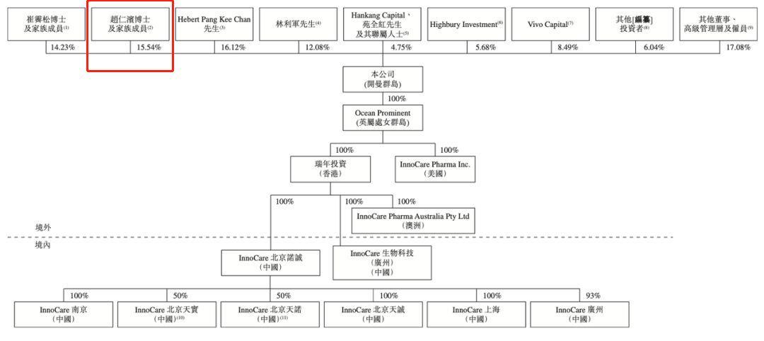 在股东持股比例中,赵仁滨博士及家庭成员的股份高达15.34%,是诺诚健华的第三大股东。