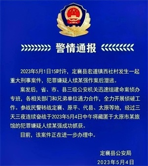 今年5月1日下午,山西定襄县宏道镇西社村发生一起重大刑事命案。