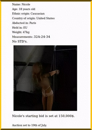 许多在暗网上被被绑架的人(男士、女士、少年儿童)都被实价,被卖去各地区做苦力、奴仆、性奴、器官交易这些。