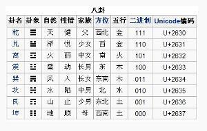 八卦在《易经》里有详细的论述。八卦相传是伏羲所造,后来用于占卜。坊间亦用汉字“三求平未,斗非半米”来记八卦符号。卦的代表符号由三爻演变而成。八卦所代表的意像兹详列如右: