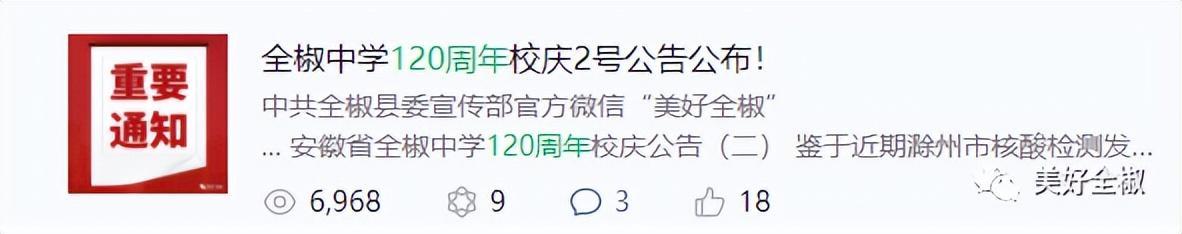 近日,全椒中学发出120周年校庆公告。公告称:安徽省全椒中学创建于1902年,前身是宋崇宁年间的全椒学宫,其与明嘉靖年间“望阳书院”、清乾隆年间“襄水书院”一脉相承,1902年改“襄水书院”为县立中学堂。1963年郭沫若先生为学校题写校名,1999年被首批批准为安徽省示范高中。