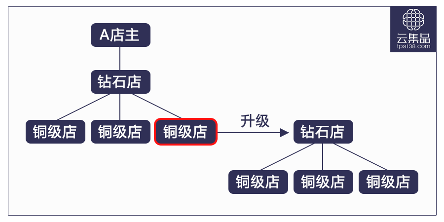 ▲云集品一位店主拥有的三层网店模式。制图:表哥