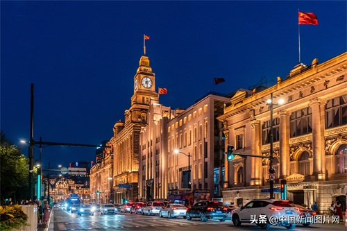 2021年6月23日晚,上海外滩沿线历史建筑亮起景观灯光。中新社发 王冈 摄