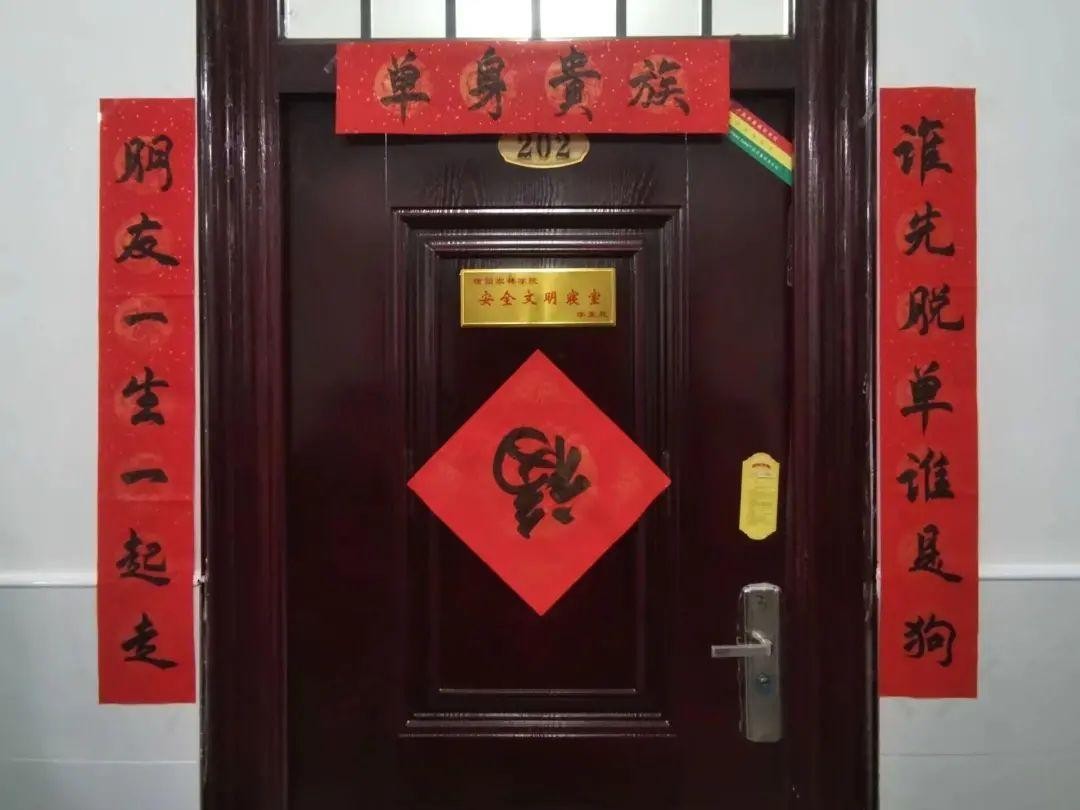 这间寝室的对联也十分有趣,几位室友约好了要做单身贵族,如果其中谁脱单了,那就等同于和朋友“绝交”了。