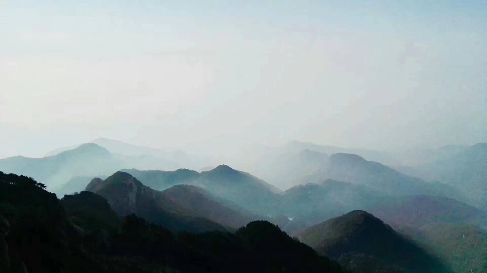 从蓝中又生出了青,青的色彩层次在蓝的色彩层次上更为丰富动人。你看,放眼望去,巍巍泰山,蓝中孕青,青中泛蓝。再细看有辽阔、苍茫、迷离的花青;有黑而泛青紫的鸦青;有青翠欲滴的竹青;更有那隐隐约约,飘浮在半山之中,说不清是蓝还是青,是青还是白,宛若仙女轻纱,又如烟云吐气,美得超凡脱俗的青白色的云雾。